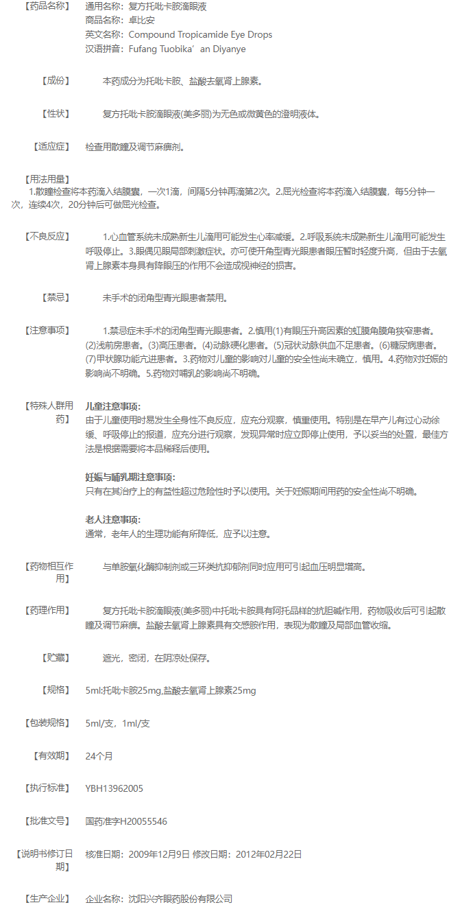 复方托吡卡胺滴眼液/(5mg*0.3%)1ml/支