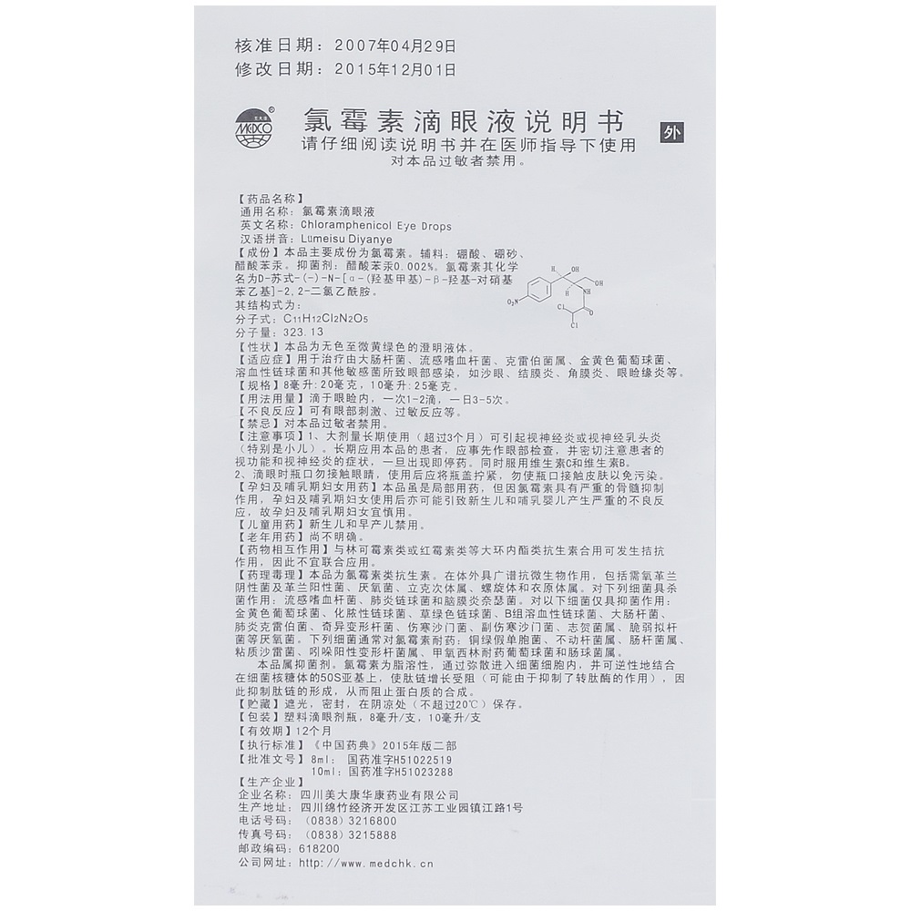 氯霉素滴眼液/8ml:20mg