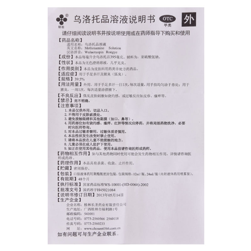通用名称:乌洛托品溶液