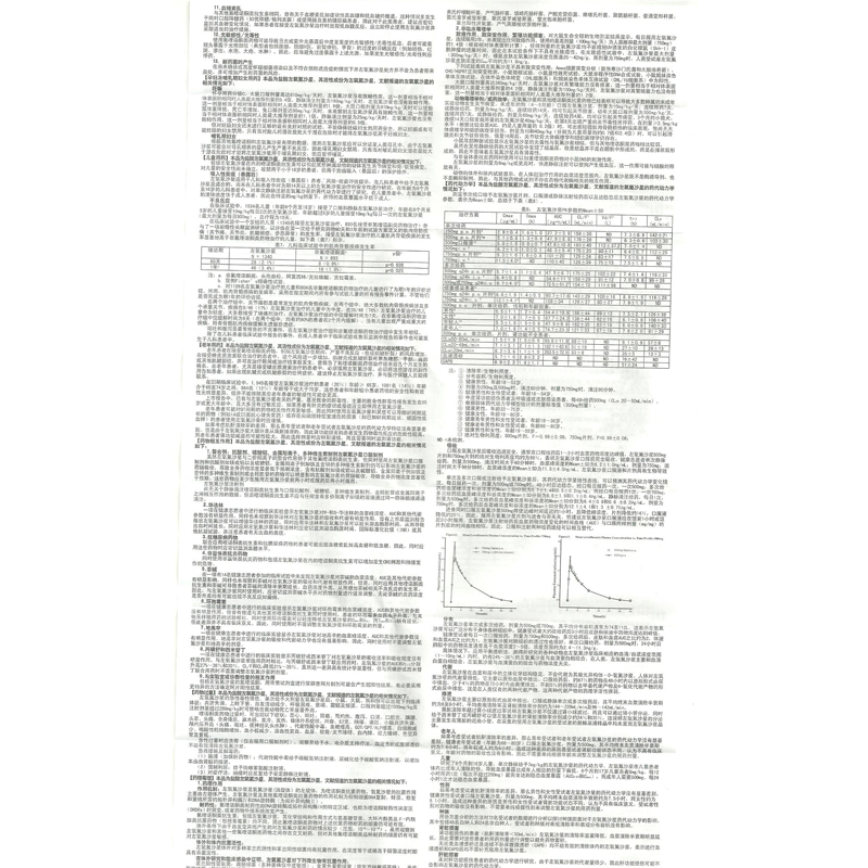 【药代动力学】口服后吸收完全,单剂量口服0.2g后,血药峰浓度(Cmax)约为1.6mg/L,达峰时间(Tmax)约为1小时。血消除半衰期(t1/2β)约为6小时。蛋白结合率约为30%~40%。本品吸收后广泛分布至各组织、体液,在扁桃体、前列腺组织、痰液、泪液、妇女生殖道组织、皮肤和唾液等组织和体液中的浓度与血药浓度之比约在1.1~2.1之间。本品主要以原形自肾排泄,在体内代谢甚少。口服48小时内尿中排出量约为给药量的80%~90%。本品以原形自粪便中排出少量,给药后72小时内累积排出量少于给药量的4%。