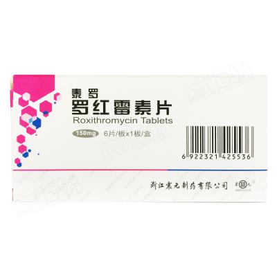 【药代动力学】 口服吸收好,血药峰浓度高,单剂量口服罗红霉素150mg后约2小时达血药峰浓度,为6.6~7.9mg/L,进食可使生物利用度下降约一半。分布广,扁桃体、鼻窦、中耳、肺、痰、前列腺及其他泌尿生殖道组织中的药物浓度均可达有效治疗水平。其蛋白结合率在血浓度2.5mg/L时为96%。以原形及5个代谢物从体内排出,7.4%自尿液排出。血消除半衰期为8.4~15.5小时。