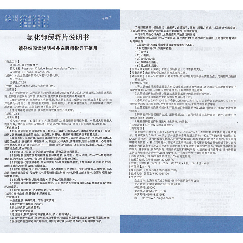 氯化钾缓释片/0.5g*24片