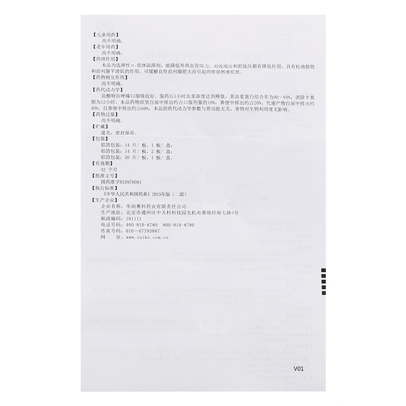 盐酸特拉唑嗪片/2mg*14片