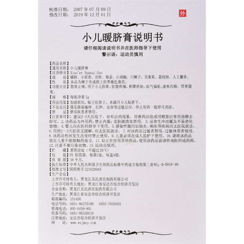 小儿暖脐膏/5g*1张/袋*4袋